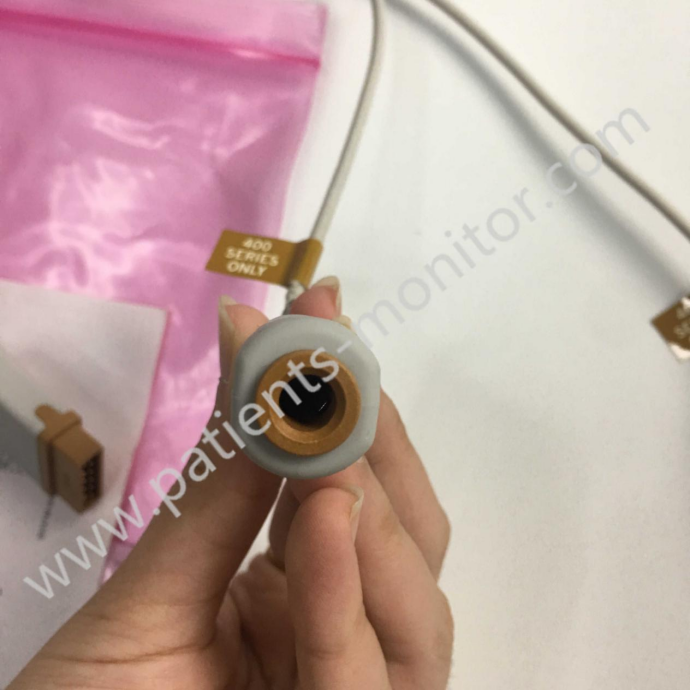 The GE Temperature Adapter Cable (Model: 2016998-001) is a 50 cm (20 in) long dual-channel adapter cable designed to connect GE medical devices to the 400 series temperature probes. The adapter cable complies with the ISO 80601-2-56 standard and is compatible with a variety of GE monitoring devices, such as B40, B105, B125, B20, B20i and CARESCAPE™ B450, B650, B850 and other models, to achieve accurate monitoring of patient body temperature. The cable is a dual-channel design. The dual-channel temperature probe adapter cable supports the simultaneous connection of two temperature probes, which can measure the temperature of two independent channels at the same time, realize multi-point temperature monitoring, and help medical staff understand the temperature conditions of different positions of the patient in advance. The dual-channel design allows real-time comparison of the temperature data of the two channels, which is very important for judging the patient's condition and can help medical staff to detect problems in time and take corresponding measures. The cable is made of high-quality materials to ensure long-term reliability. The simple design facilitates quick connection of temperature probes and monitors to improve work efficiency. The smart aviation plug connector in the adapter cable has a built-in memory chip that stores information for calibrating the connected probe, such as Rtp, a, b, c, etc., and automatically loads the calibration information to the thermometer to achieve precise measurement.